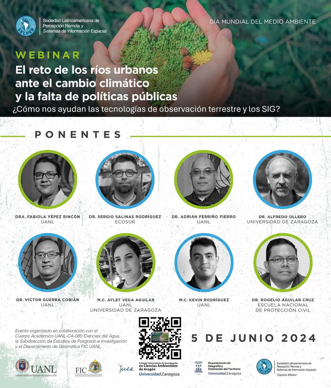 Estimados selperianos, buscamos discutir sobre problemas de interés actual y como podemos apoyarnos con la percepción remota. Arrancamos con el Webinar de ríos urbanos, cambio climático y políticas públicas. ¡No se lo pierdan este 5 de junio! en el marco del Día Mundial del Medio Ambiente.
